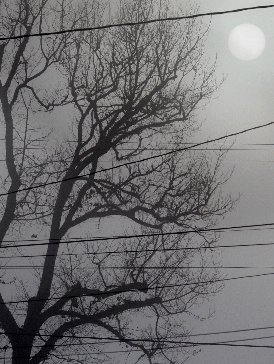 The solar orb tries to make an appearance through the fog above Gharkey Street on the Westside of Santa Cruz Sunday. Morning fog, clouds and even rain and drizzle are part of the forecast through this weekend with clearing expected on Saturday.